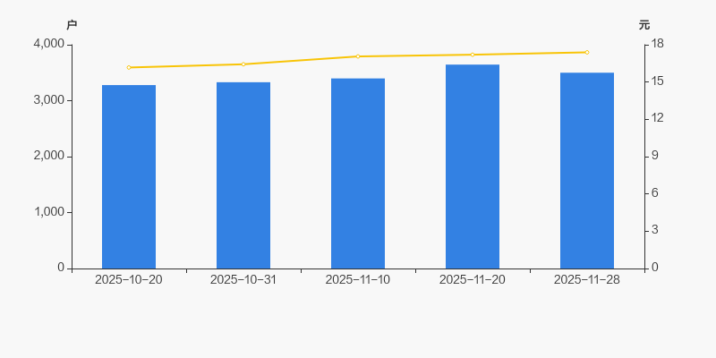2025年10月20日至今,公司股东户数有所增长,区间涨幅为6.74%。2025年10月20日至2025年11月28日区间股价上涨7.54%。