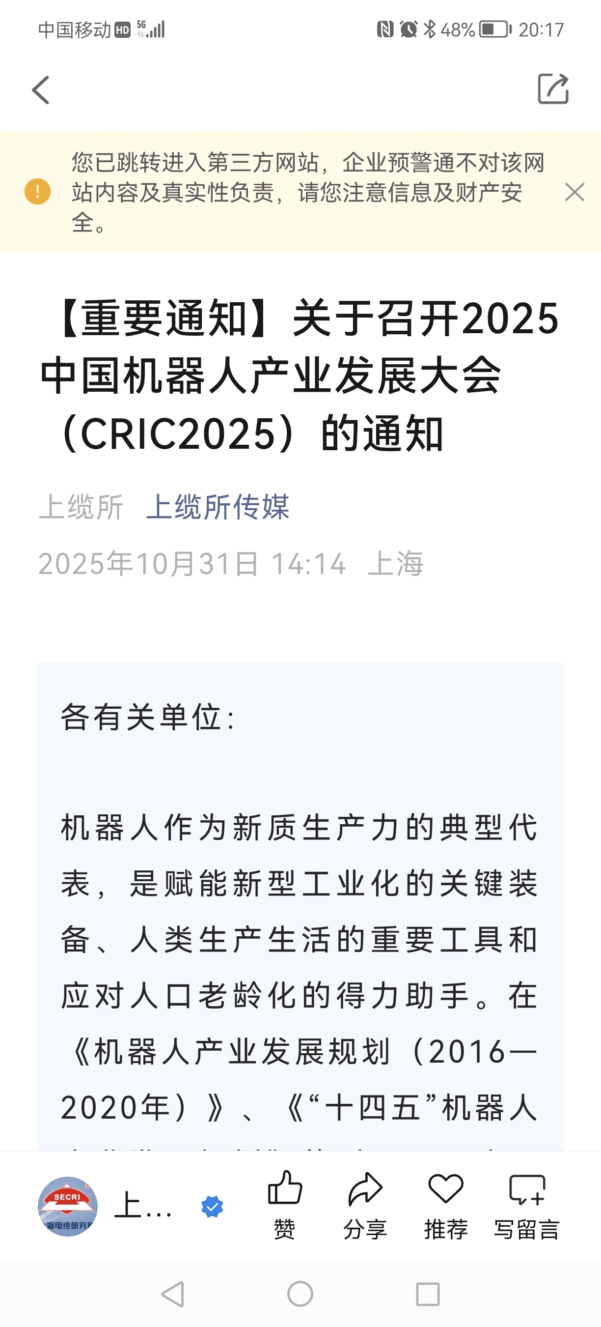 $国缆检测(SZ301289)$ 协办中国机器人产业大会!