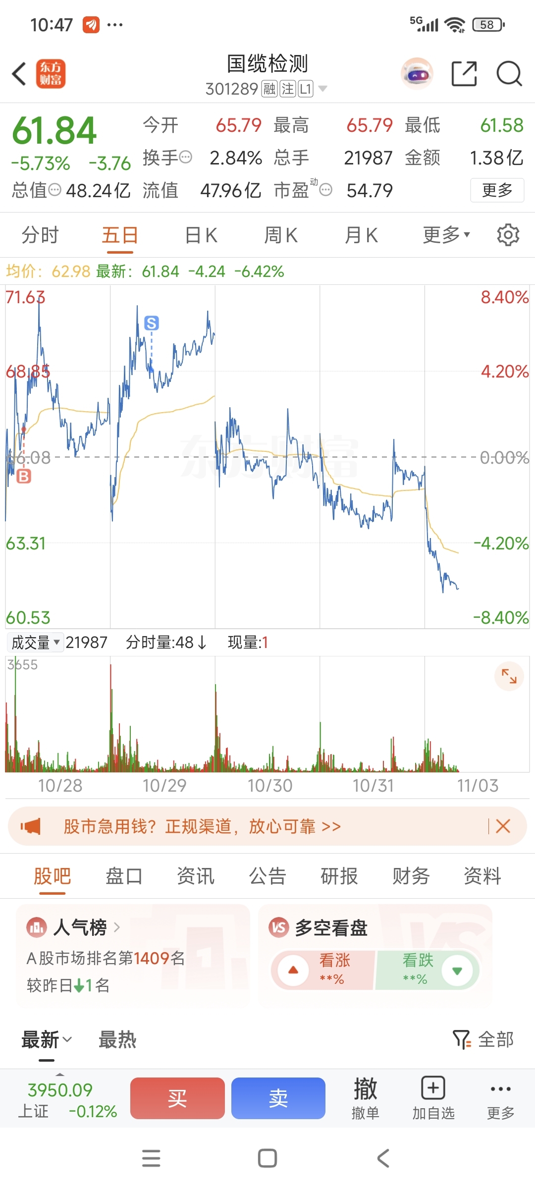 $国缆检测(SZ301289)$ 幸好,上周跑得快,主力太阴