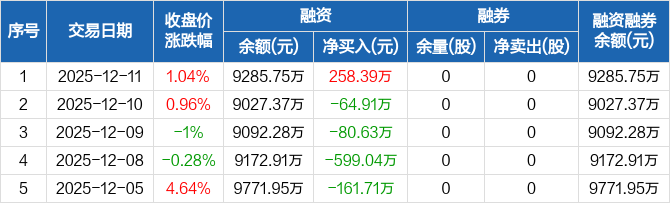 国缆检测:融资净买入258.39万元,融资余额9285.75万元(12-11)