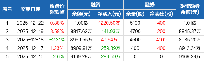 国缆检测:融资净买入1220.5万元,融资余额1亿元(12-22)