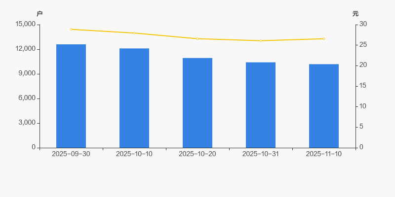 自2025年9月30日以来,公司股东户数连续4期下降,截至目前减幅为19.21%。2025年9月30日至2025年11月10日区间股价下降7.94%。