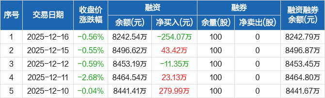 东星医疗:融资净偿还254.07万元,融资余额8242.54万元(12-16)