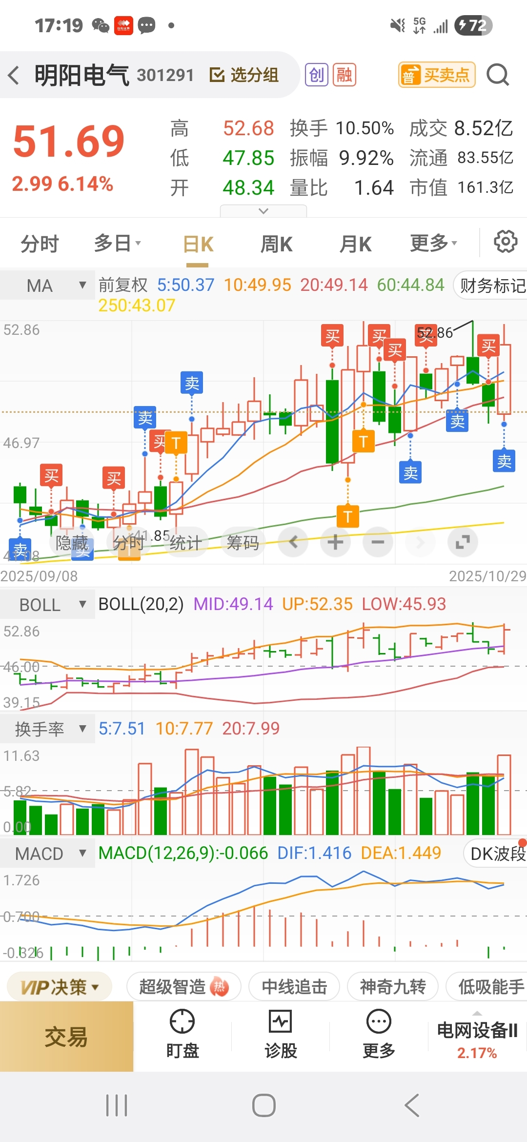 $明阳电气(SZ301291)$ 尾盘跑了点,早上加了特锐德没加她做T,不然赚得还多