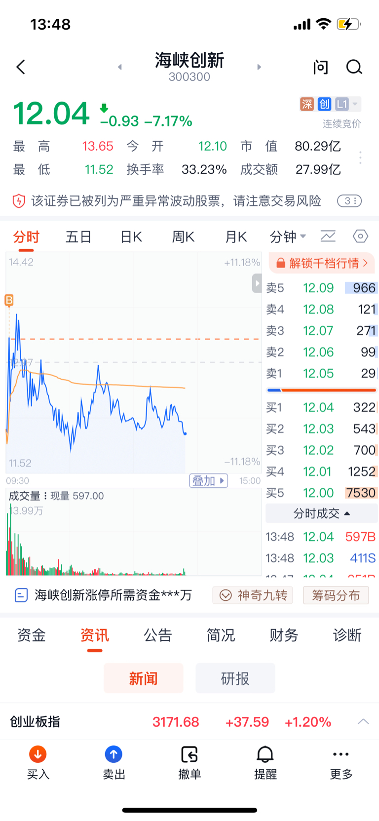 差点就让我实现财富自由了……幸好一大早我卖掉调仓去买了海峡创新