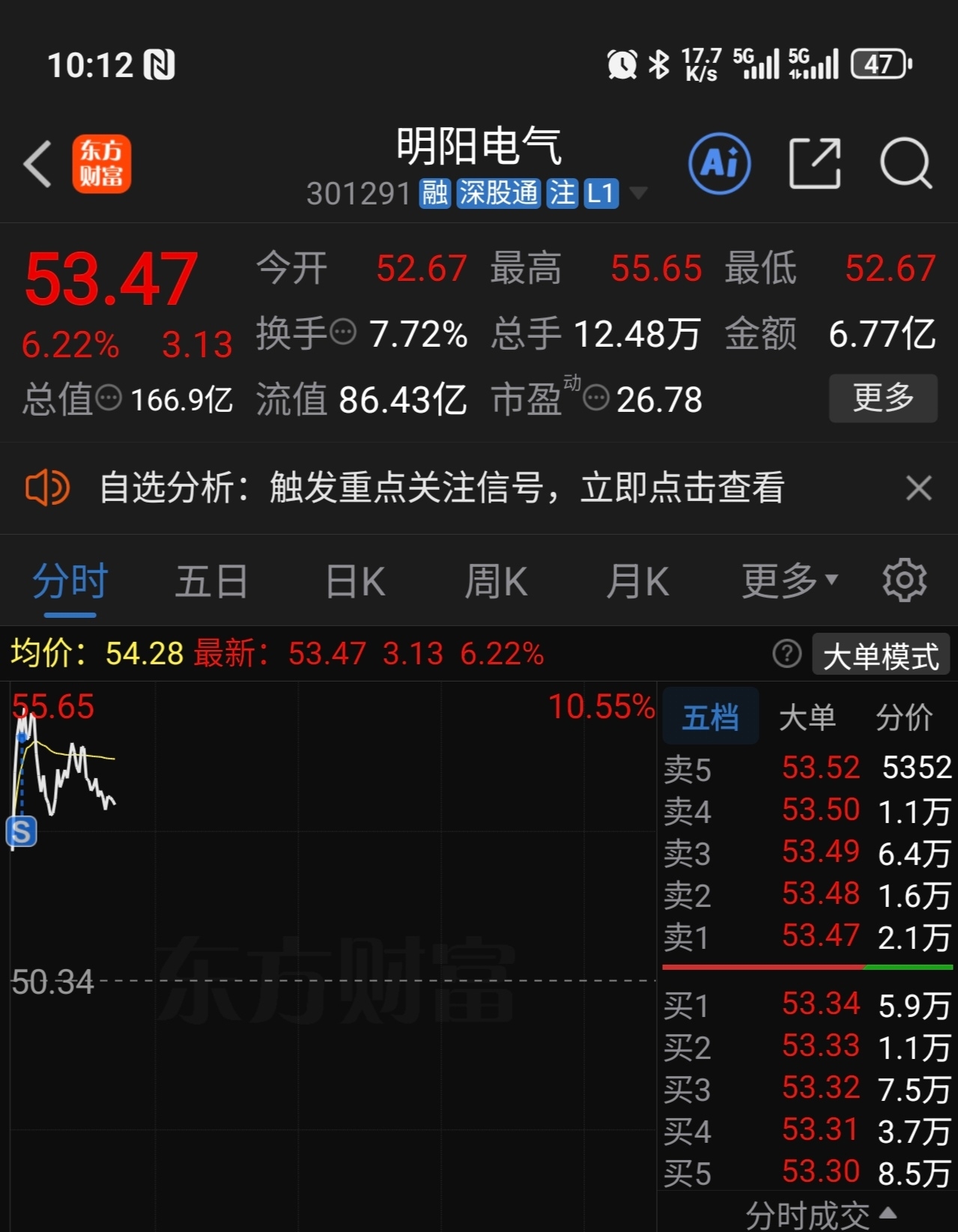 $明阳电气(SZ301291)$ 上影线之王,可惜没卖到最高点