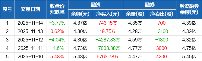 明阳电气:融资净买入743.15万元,融资余额4.37亿元(11-14)