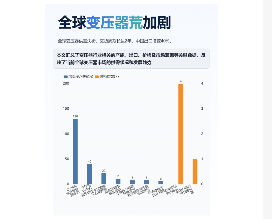 欧美市场一台主变压器的价格是国内市场的四倍。明阳电气先知先觉早已经布局海外市场。目前公司加班加点生产,产品供不应求。