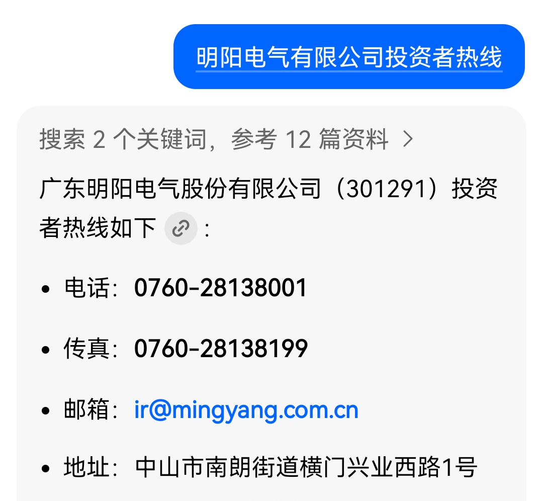 刚才打了明阳电气董事会办公室电话,0736—28138001,狠狠的批评了他们一