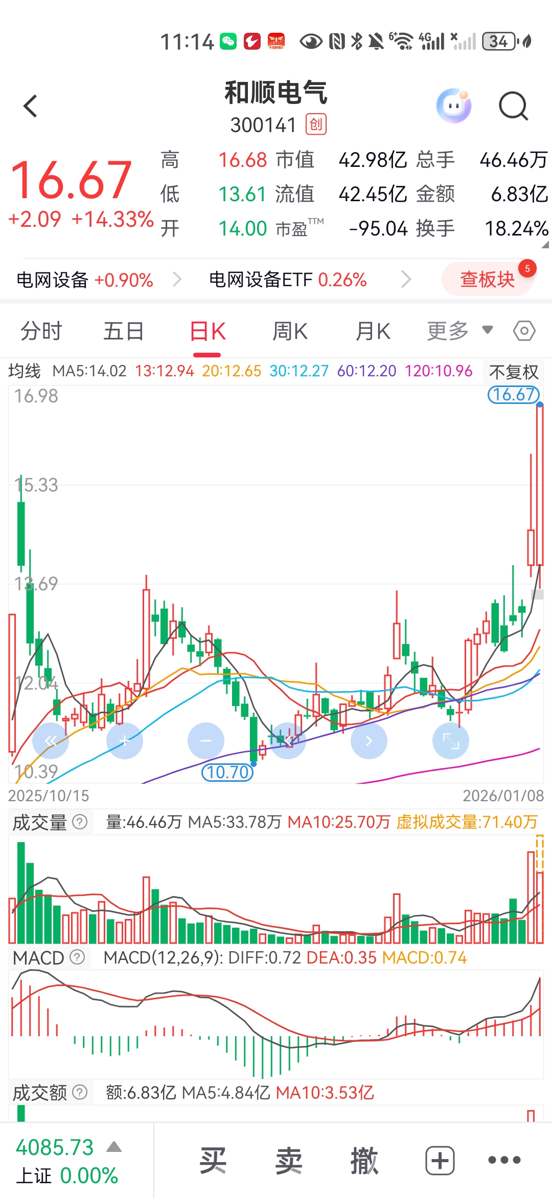 和顺电气冲20CM,涨停创新高。明阳电气不会无动于衷