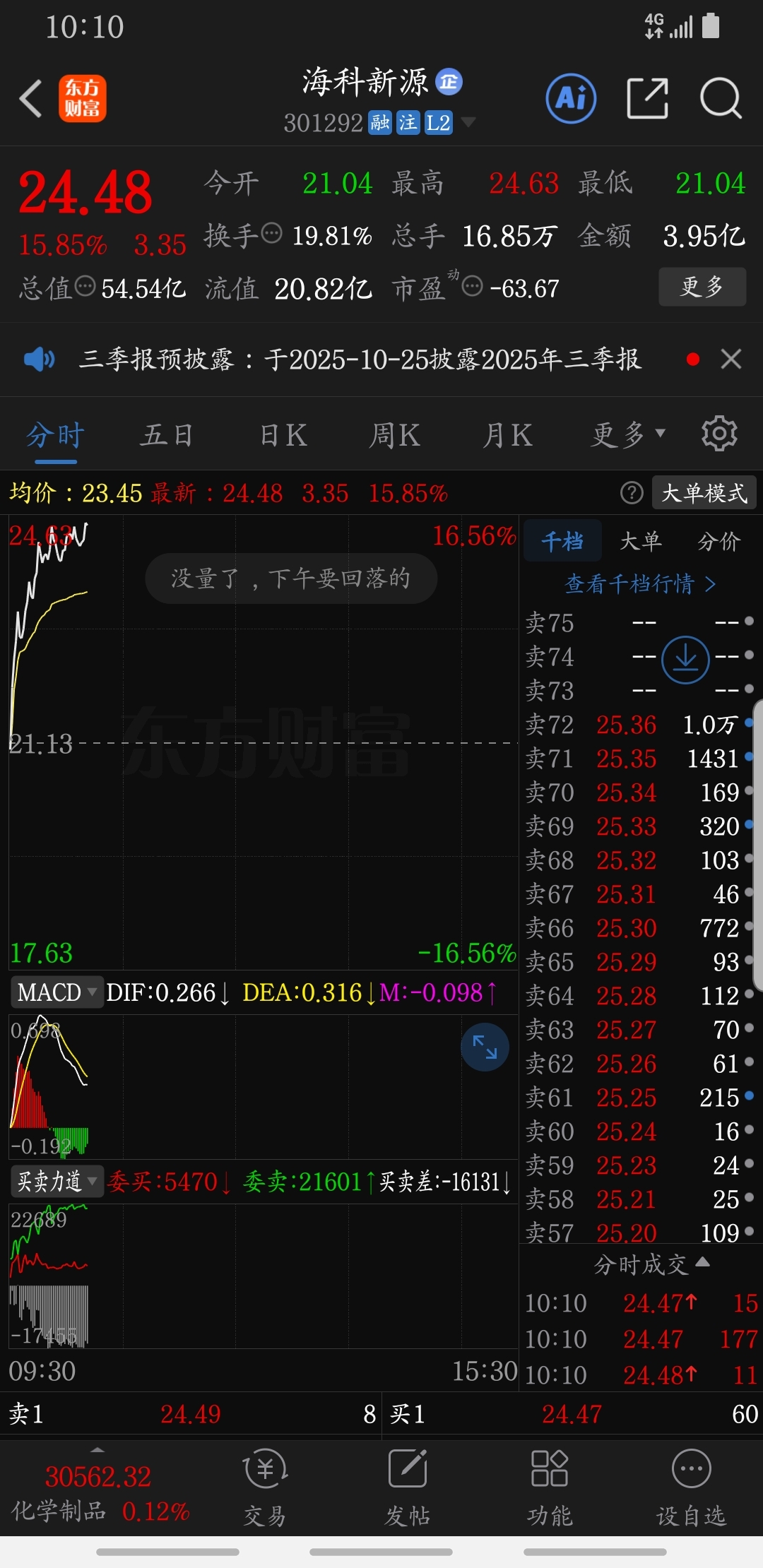 $海科新源(SZ301292)$ 十点半前~~