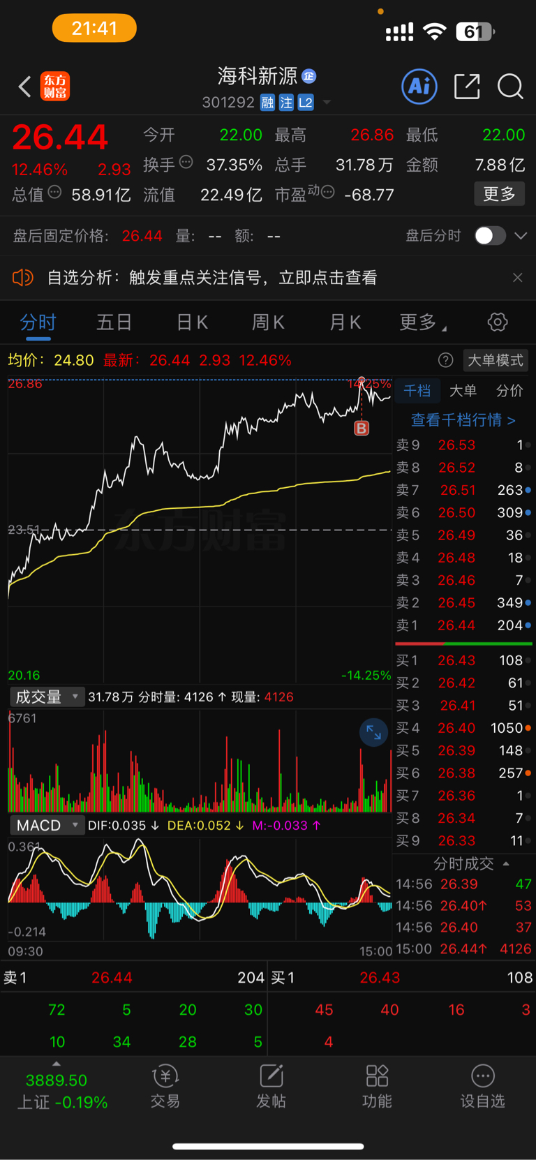 自选里的都拉起来了,只有佛燃能源一直在水下,忍痛割肉追了海科新源,一面两吃,直接