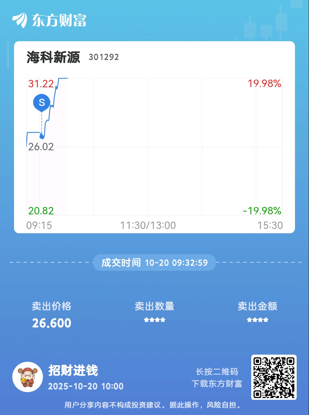 温馨提示: 1.根据《证券法》规定,禁止编造、传播虚假信息或者误导性信息,扰乱证券市场;2.用户在本社区发表的所有资料、言论等仅代表个人观点,与本网站立场无关,不对您构成任何投资建议。用户应基于自己的独立判断,自行决定证券投资并承担相应风险。《东方财富社区管理规定》