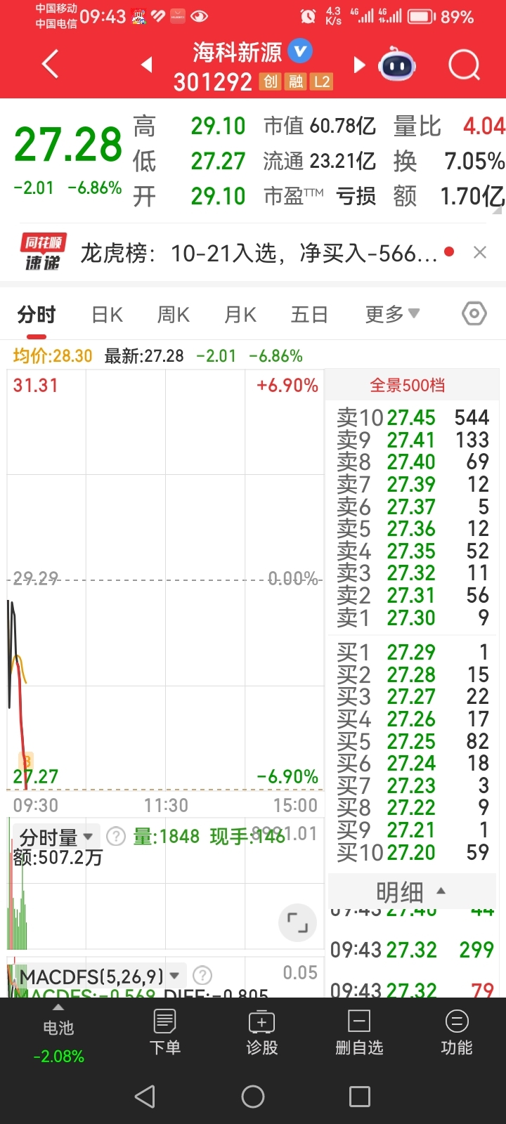 $海科新源(SZ301292)$ $海科新源(301292)$ 快速暴利杀,抄底了。