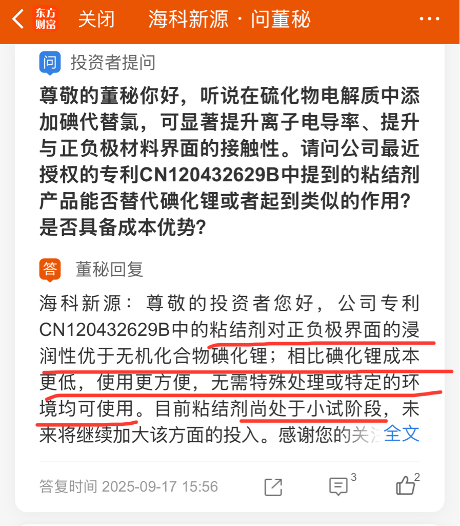 海科新源最牛B的地方我觉得不在于电池溶液的涨价,而在于海科新源拥有超越碘化锂的核心专利产品!