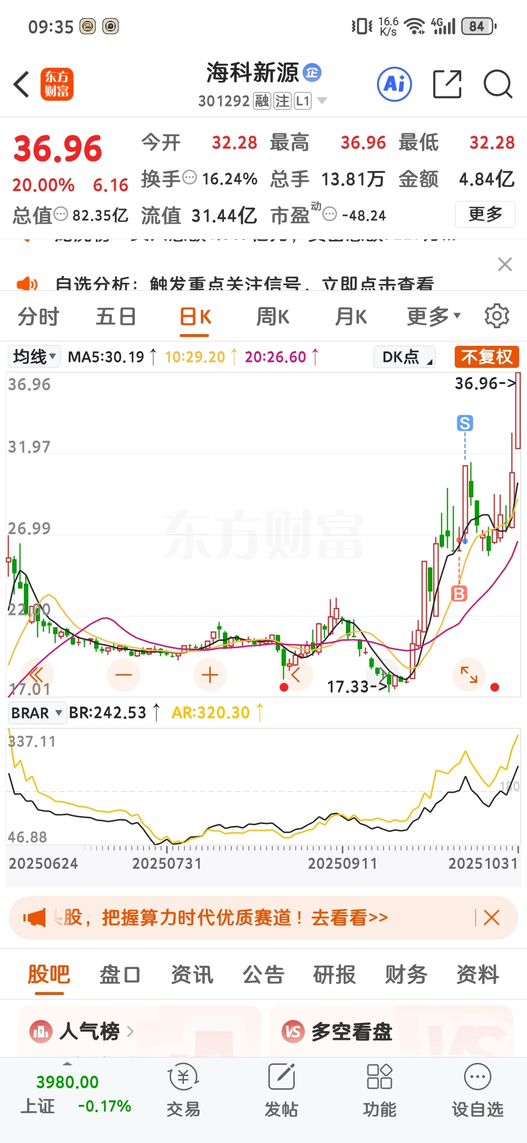 $海科新源(SZ301292)$ 真服了,到处卖飞接盘,这个月本来可以赚50个点,结果亏了25个点