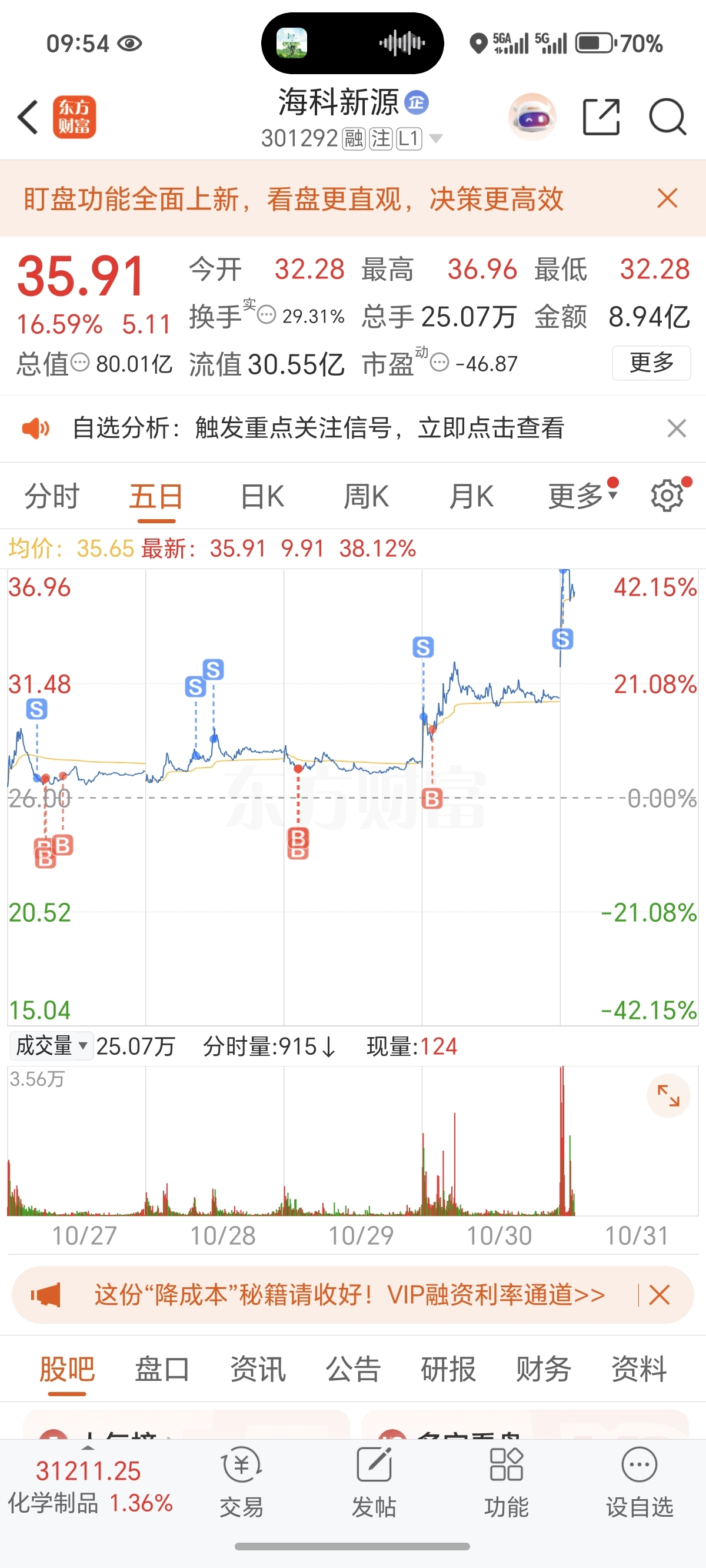 $海科新源(SZ301292)$ 感谢主力,今天要是能回落10个点以下再收回