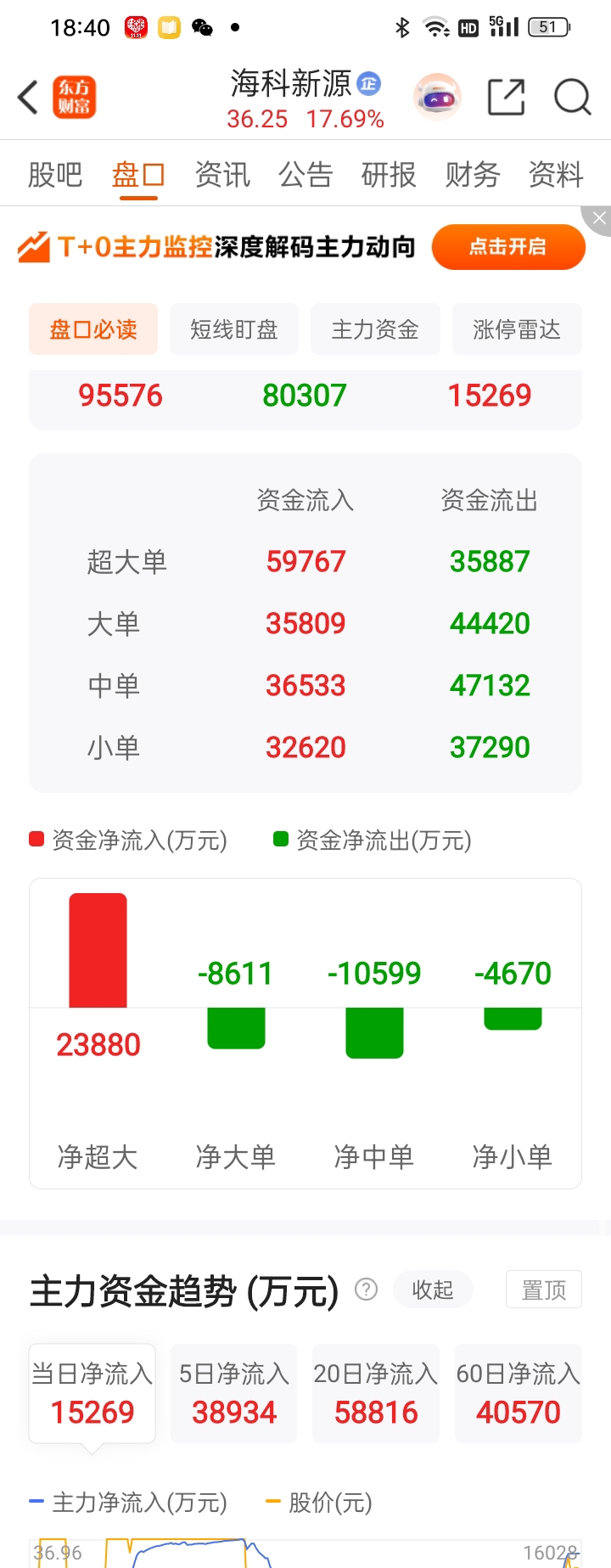 $海科新源(SZ301292)$ 主力资金净买入两三个亿!周一有涨停板了。