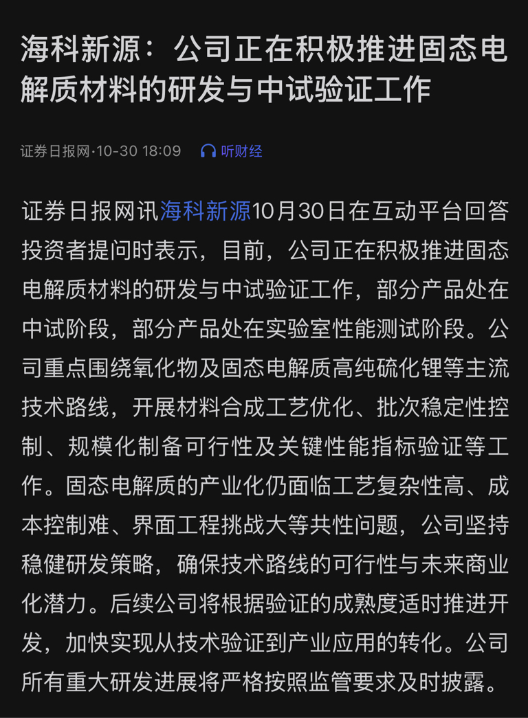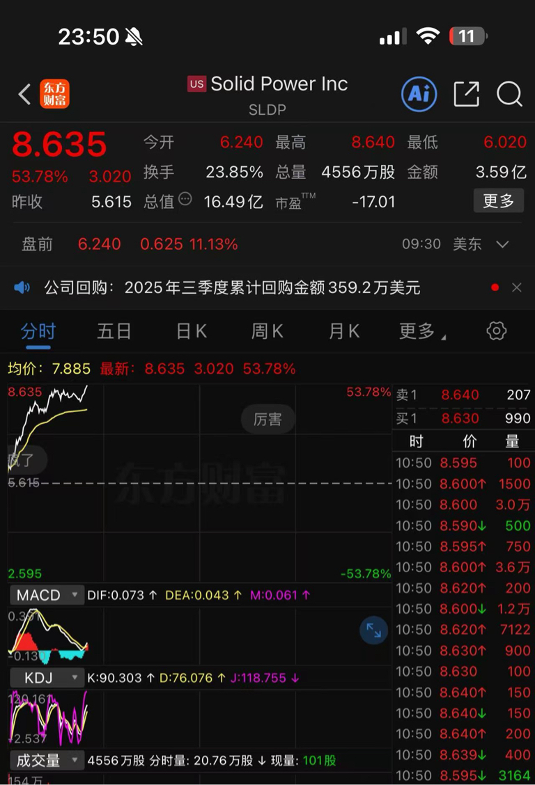 明早肯定上新闻Solid Power暴涨百分之好几十固态电池板块火热
