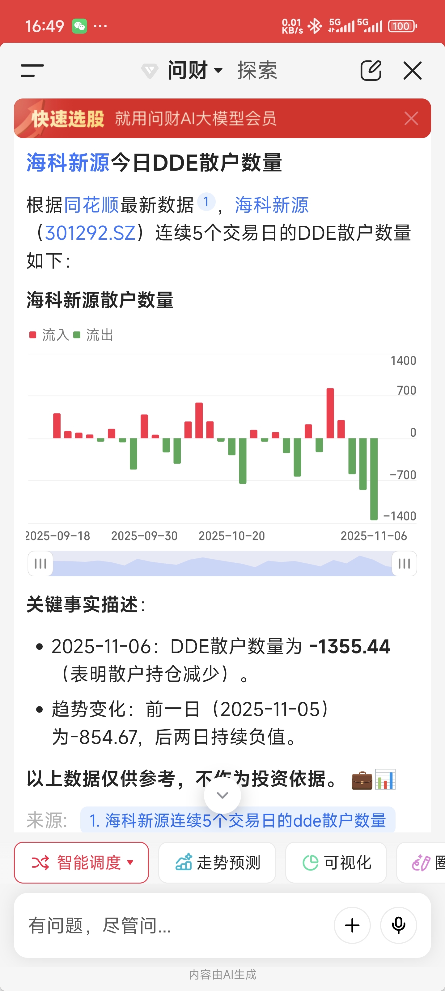 $海科新源(SZ301292)$ 今日散户跑了很多,机构在接