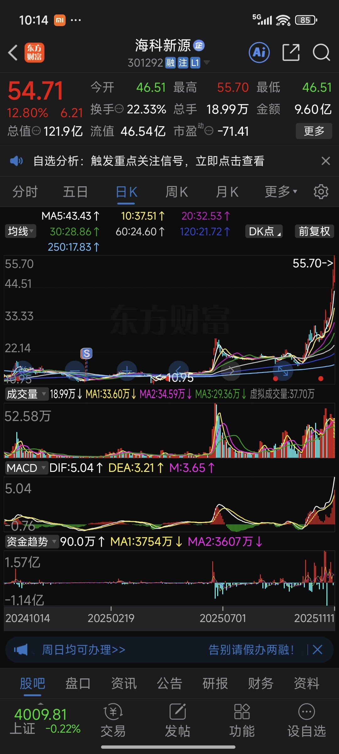$海科新源(SZ301292)$ 今年5倍股,失之交臂