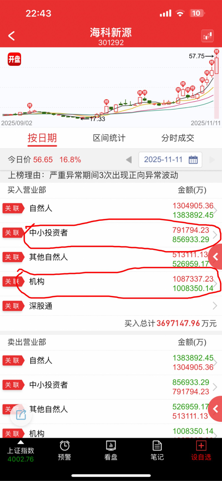 $海科新源(SZ301292)$ 散户全部被洗出去了!机构净买入海科新源9个亿的筹码!叠加今晚海科接到60万吨电解液的超大订单!明天海科要走加速的一字涨停板