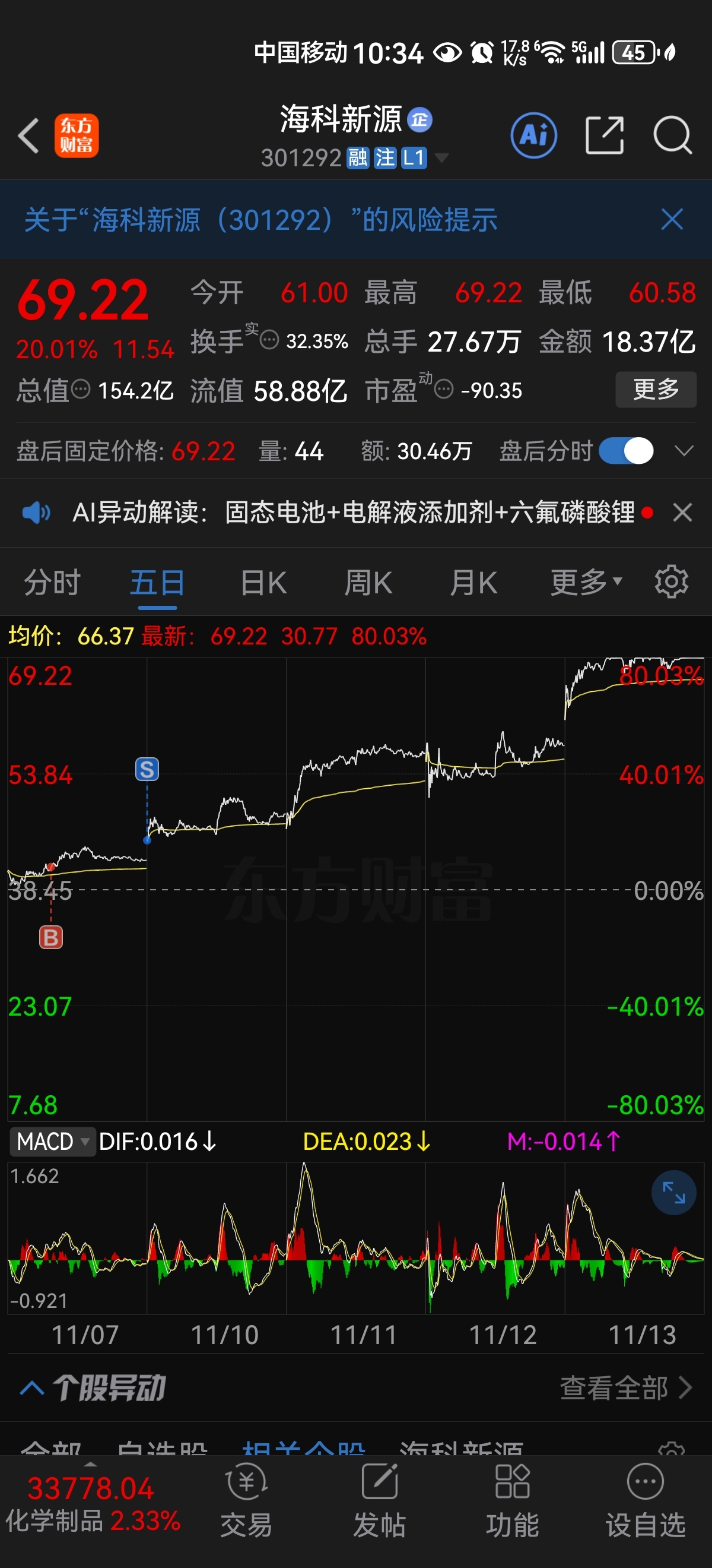 卖飞了海新新源80点买了天华新能。今天又卖飞了,一看不对赶紧全部买回来了总算没踏