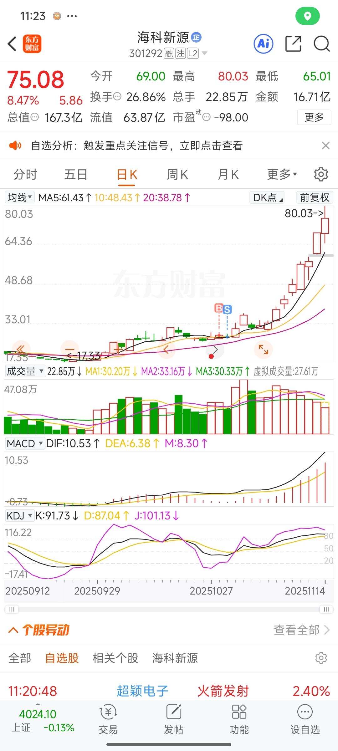 $海科新源(SZ301292)$ 卖在起飞前一天,天天看,天天涨,越涨越不敢买