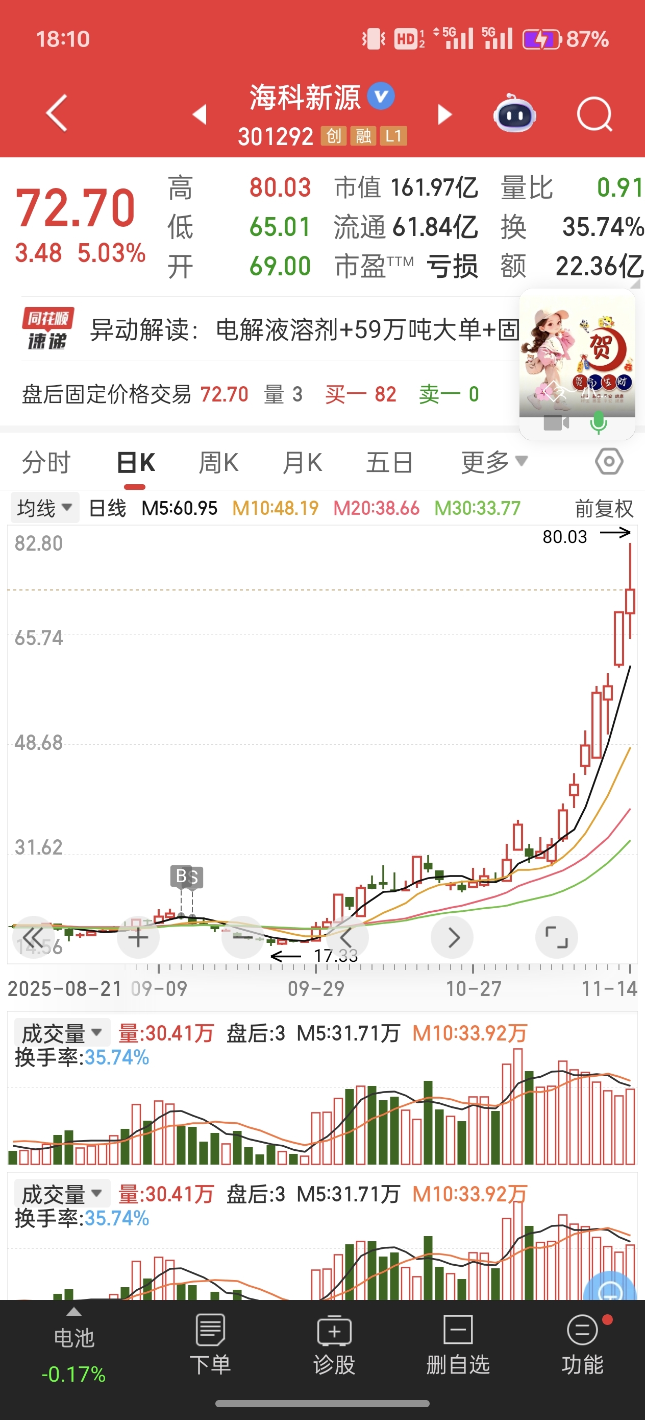 $海科新源(SZ301292)$ 韭菜命