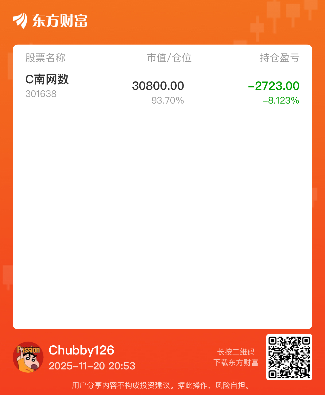 温馨提示: 1.根据《证券法》规定,禁止编造、传播虚假信息或者误导性信息,扰乱证券市场;2.用户在本社区发表的所有资料、言论等仅代表个人观点,与本网站立场无关,不对您构成任何投资建议。用户应基于自己的独立判断,自行决定证券投资并承担相应风险。《东方财富社区管理规定》