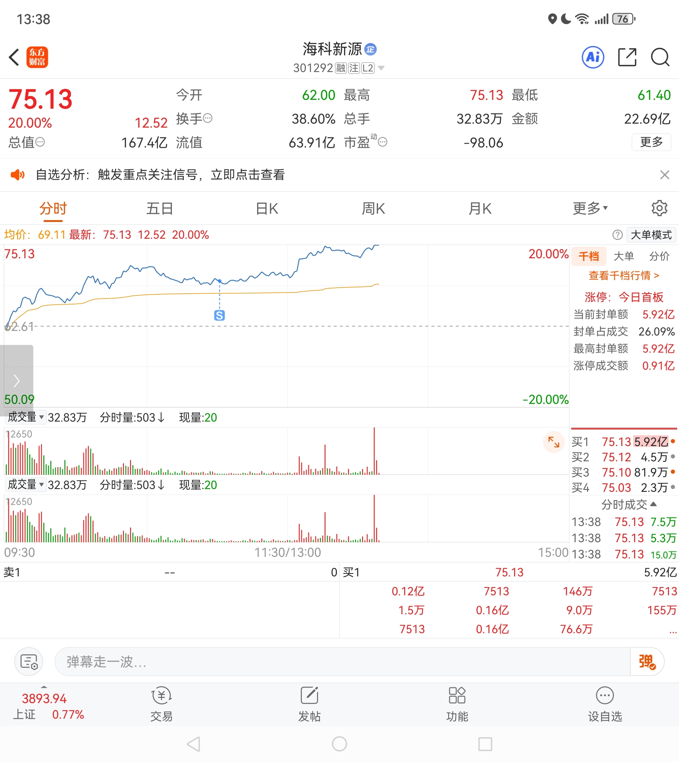 $海科新源(SZ301292)$ 卖飞 韭菜本尊