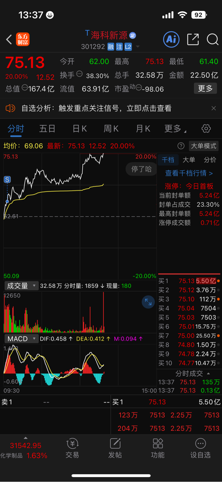 $海科新源(SZ301292)$ 拍断腿