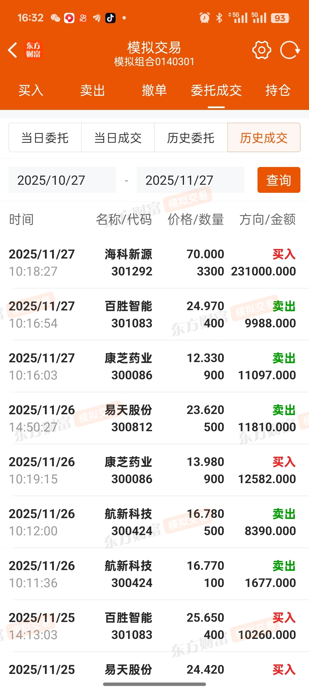 虽然是模拟盘但海科新源确实是跟随盘感而买进的,说明我的盘感又进步了一点。