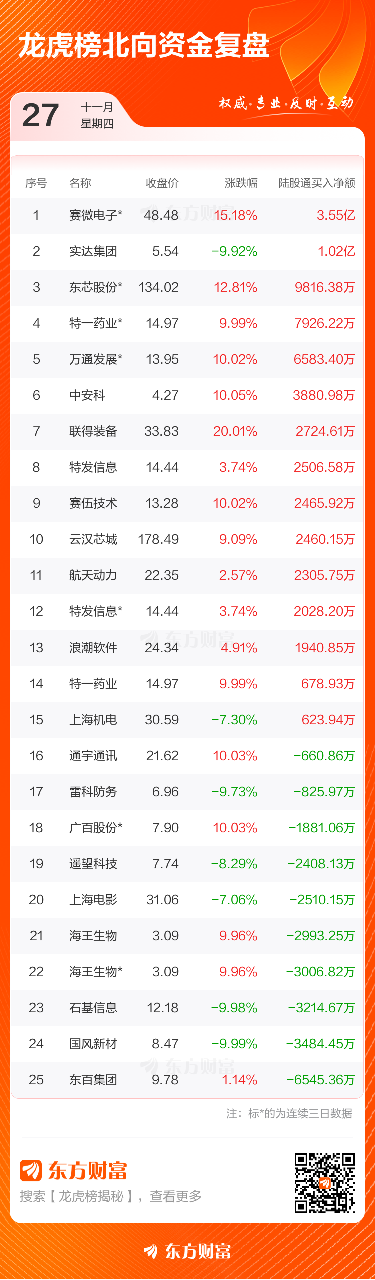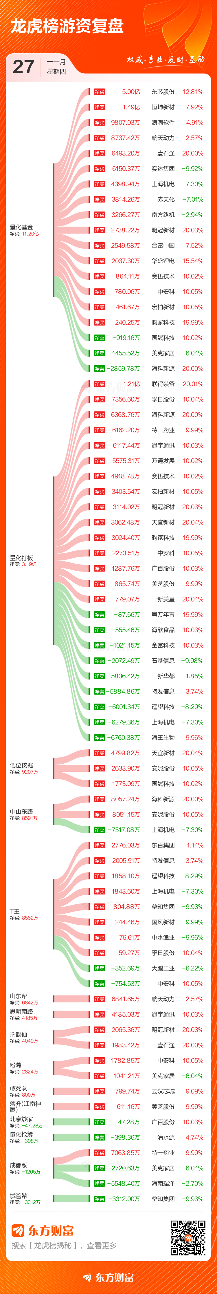 11月27日龙虎榜复盘:“中山东路”8057.24万元净买入海科新源