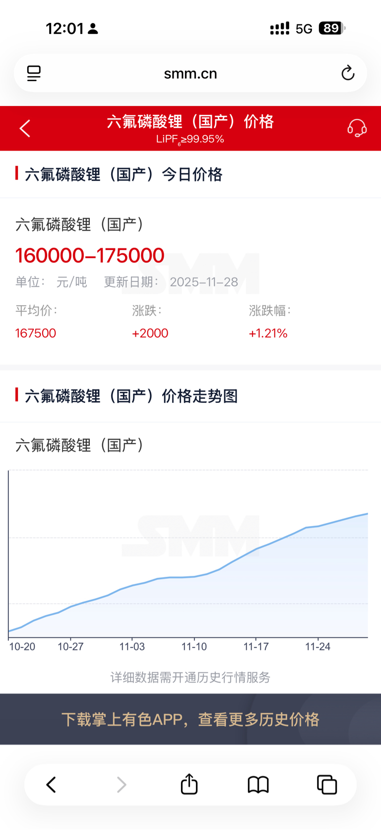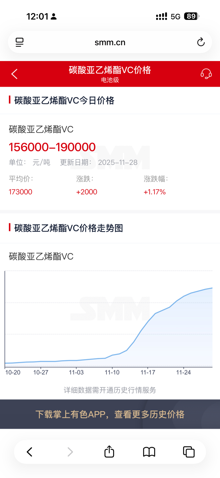 六氟磷酸锂均价涨2000碳酸亚乙烯酯均价涨2000最高报价190000了,二十万