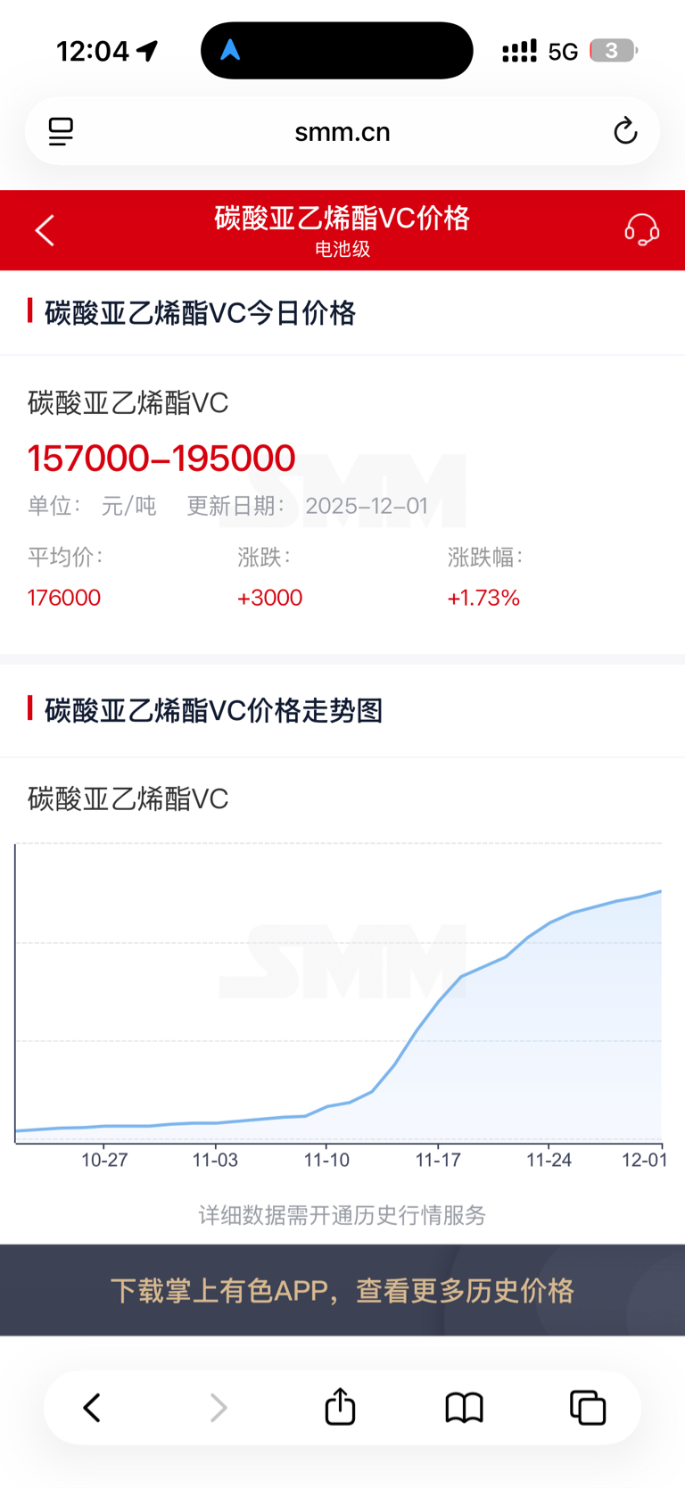$海科新源(SZ301292)$ VC单价最高涨了 7000,均价涨 3000 电解液涨势也是源源不绝均价涨了 500 六氟磷酸锂均价涨了 1500 均价 169000,按理年前摸二十也不是不可能$天际股份(SZ002759)$ $天赐材料(SZ002709)$