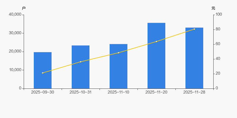 2025年9月30日至今,公司股东户数显著大幅增长,区间涨幅达67.53%。2025年9月30日至2025年11月28日区间股价上涨281.54%。
