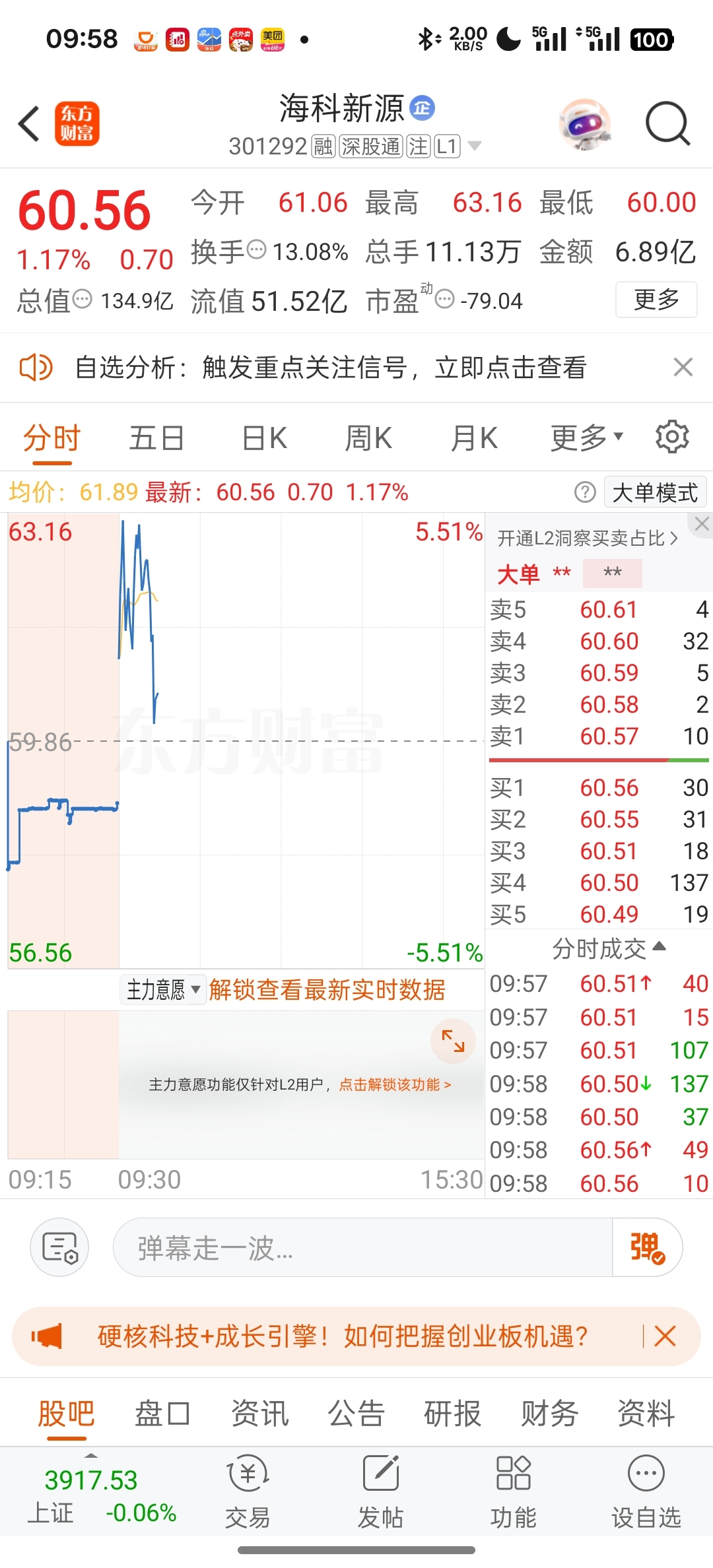 $海科新源(SZ301292)$ 一天到晚除了跳水之外,啥也不会!!