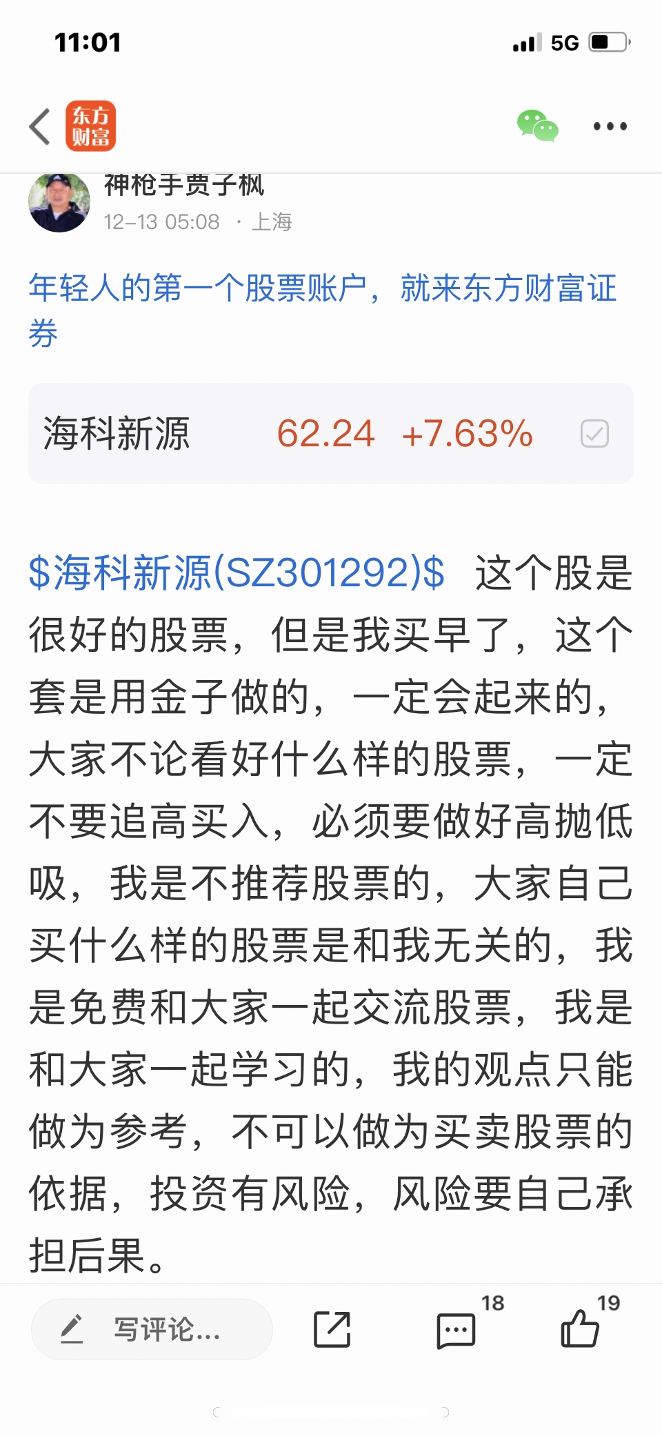 $海科新源(SZ301292)$ 大家可以去看我前面的帖子是怎么写的,前天就判断好今天的走势,