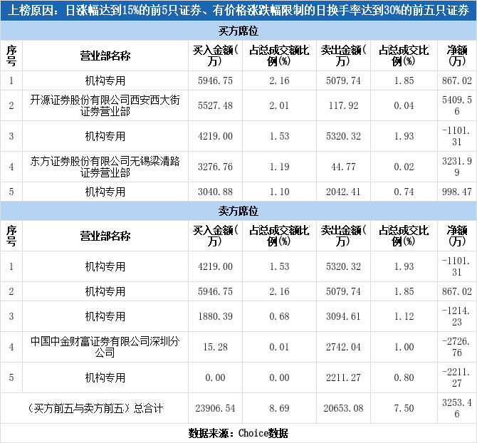 多主力现身龙虎榜,海科新源涨停(12-26)