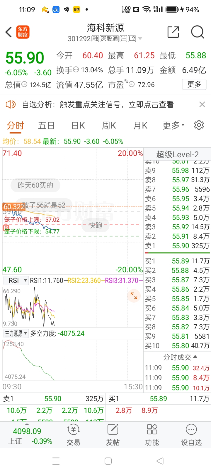 $海科新源(SZ301292)$ 一进来就亏快10个点,打板也没这么亏的,以后还是打板吧
