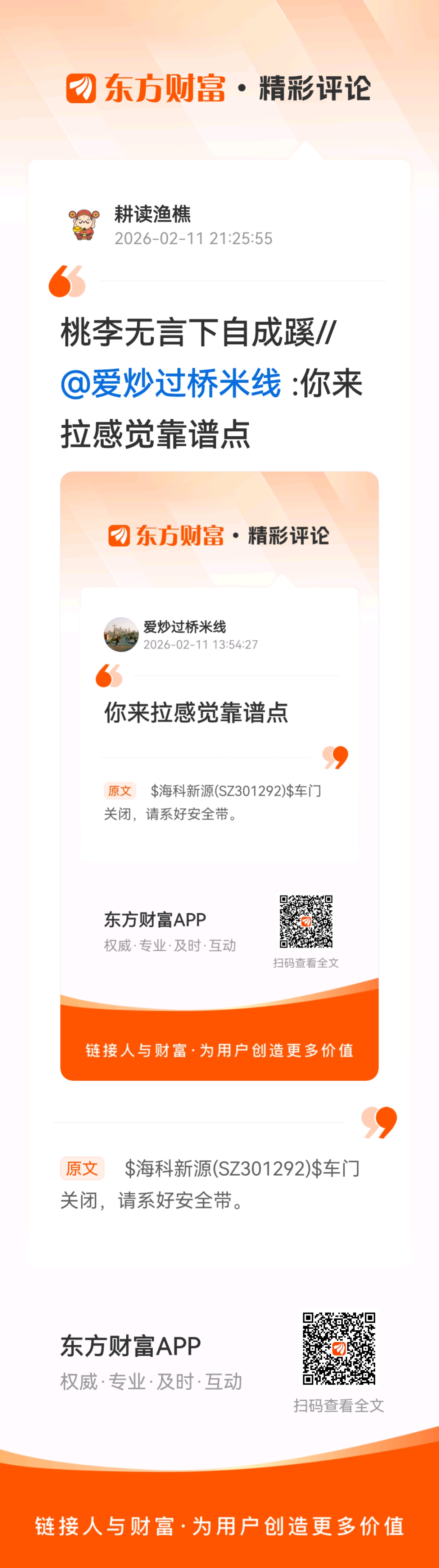 $海科新源(SZ301292)$  车门关闭,请系好安全带。