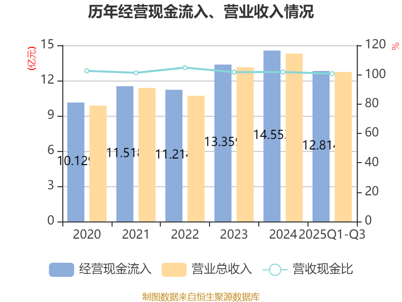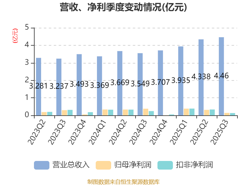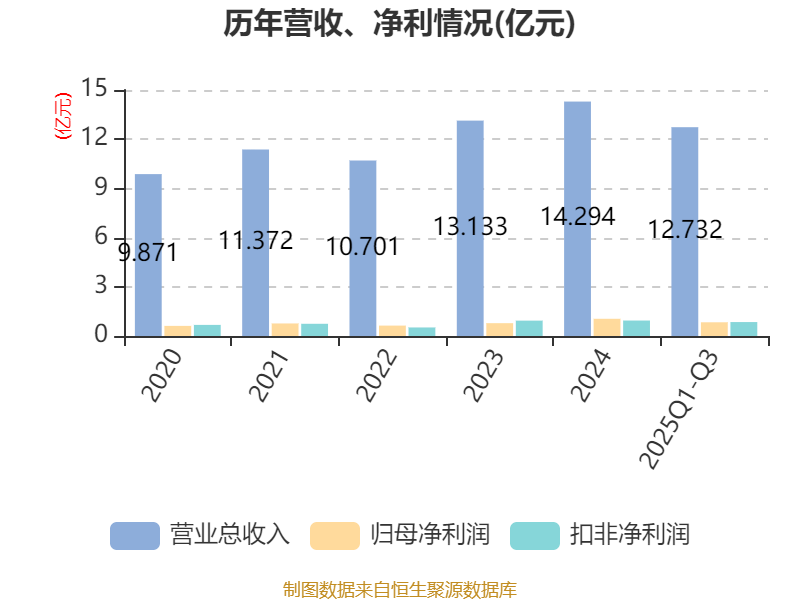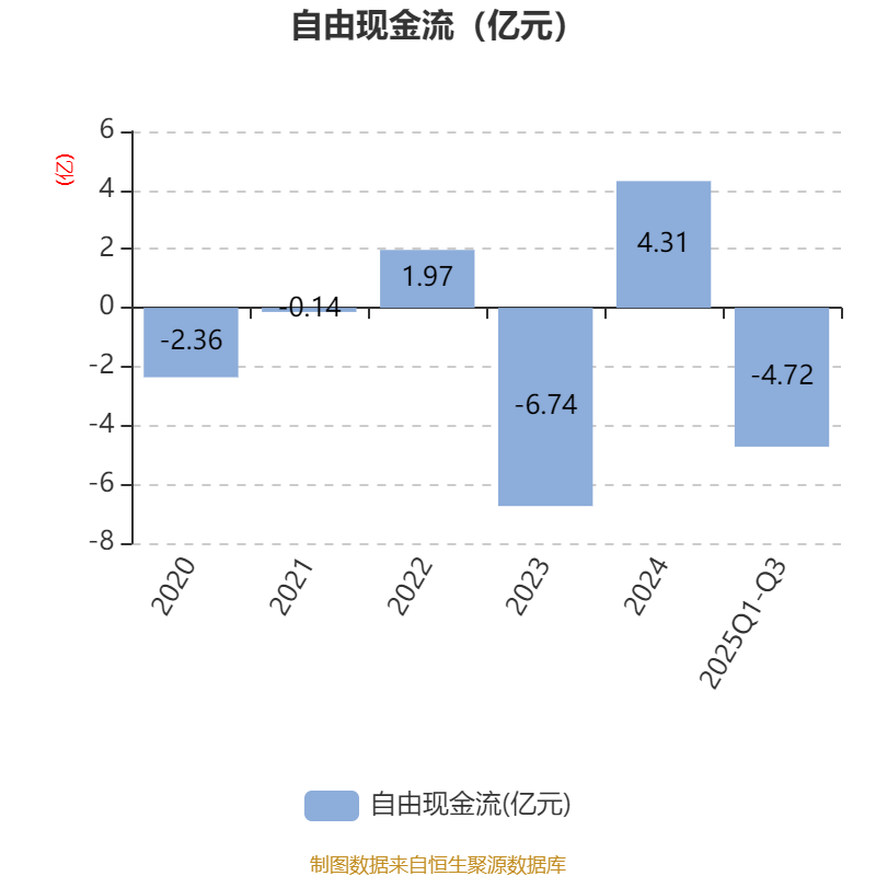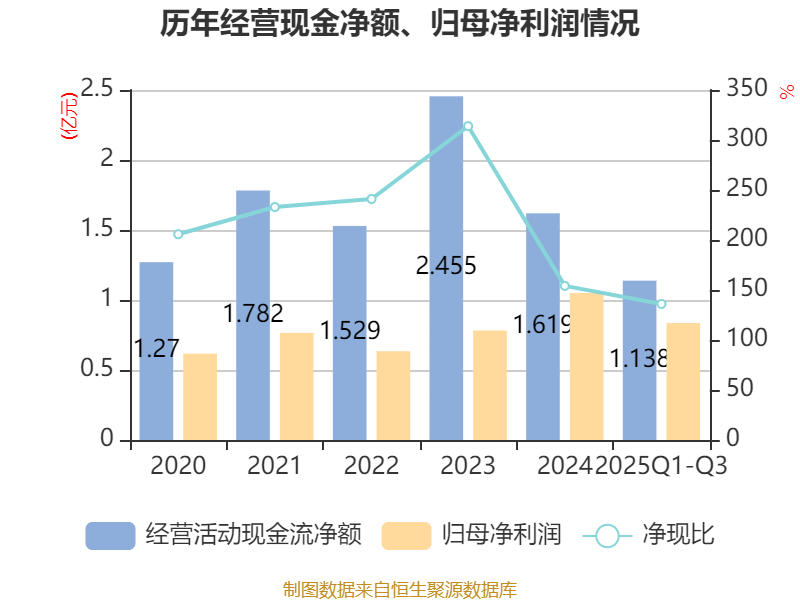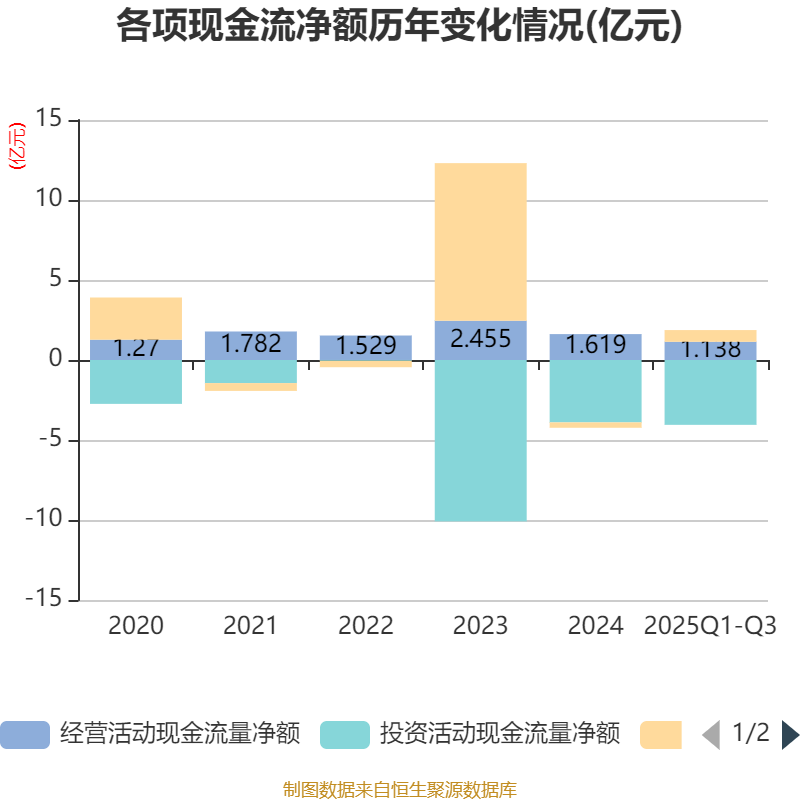 2025年前三季度,公司经营活动现金流净额为1.14亿元,同比下降13.69%;筹资活动现金流净额7318.72万元,同比增加2.27亿元;投资活动现金流净额-4.05亿元,上年同期为-5148.33万元。