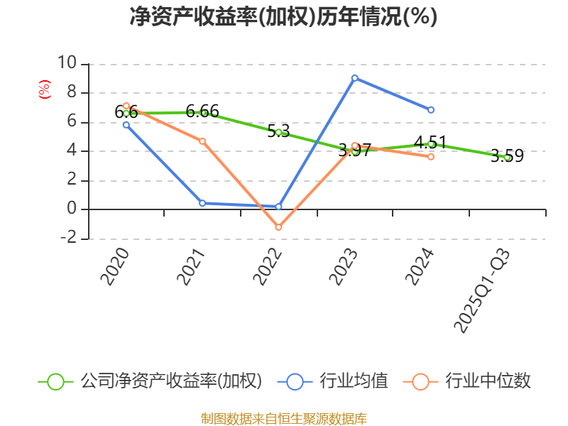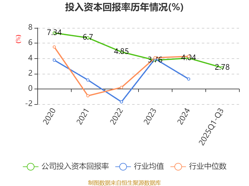 盈利能力方面, 2025年前三季度公司加权平均净资产收益率为3.59%,同比下降0.85个百分点。公司2025年前三季度投入资本回报率为2.78%,较上年同期下降1.48个百分点。