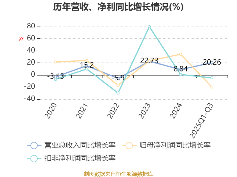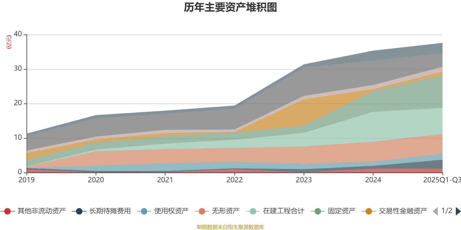 资产重大变化方面,截至2025年三季度末,公司货币资金较上年末减少44.62%,占公司总资产比重下降9.61个百分点;固定资产较上年末增加55.86%,占公司总资产比重上升7.99个百分点;长期待摊费用较上年末增加218.57%,占公司总资产比重上升4.55个百分点;在建工程合计较上年末减少12.96%,占公司总资产比重下降4.46个百分点。