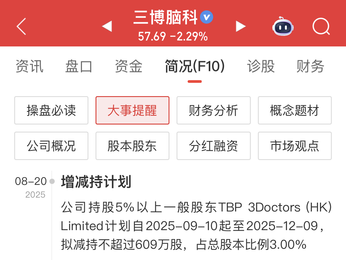 $三博脑科(SZ301293)$ 609万股减持还没结束还有1个月时间,目前只减持30万股