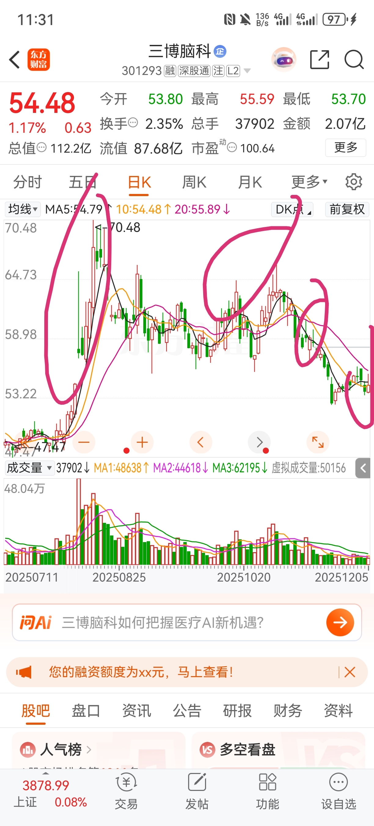 $三博脑科(SZ301293)$ 这股不做T没活路。很多避雷针。今天的避雷针,下周一又是阴线伺候。弱股,减持。