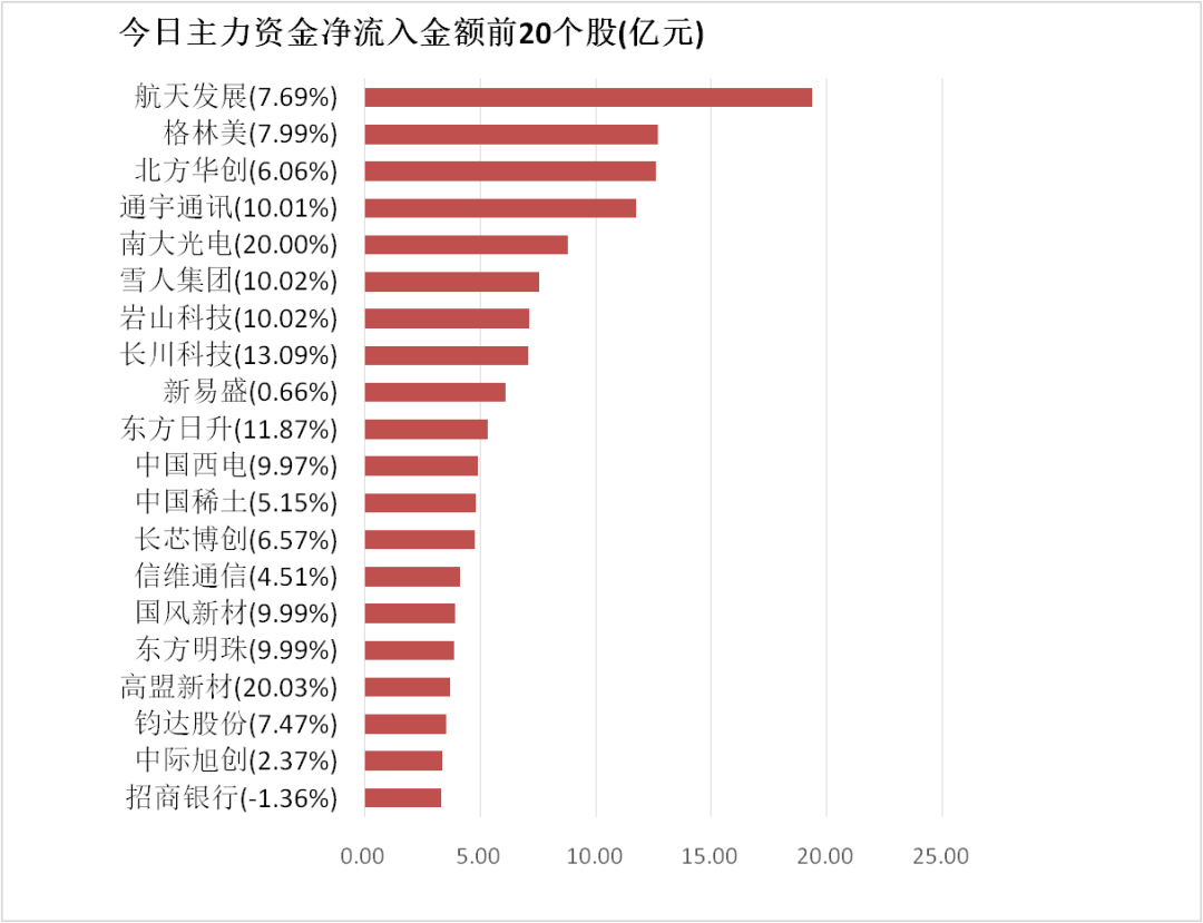 4.航天发展主力资金净流入19.33亿元居首