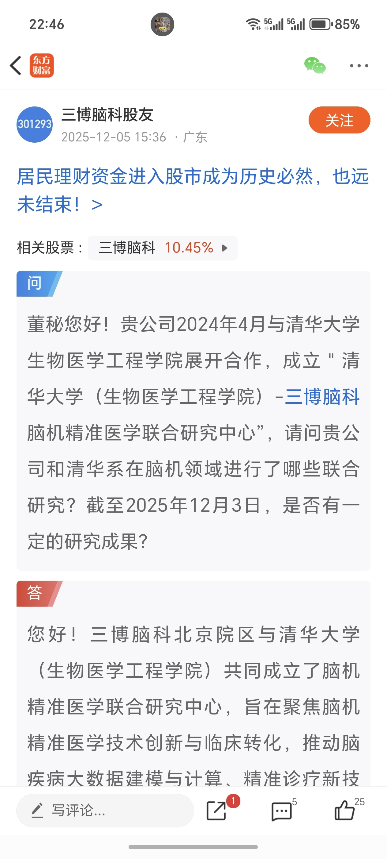 $三博脑科(SZ301293)$ 原来和清华大学合作的有脑机接口,怪不得涨