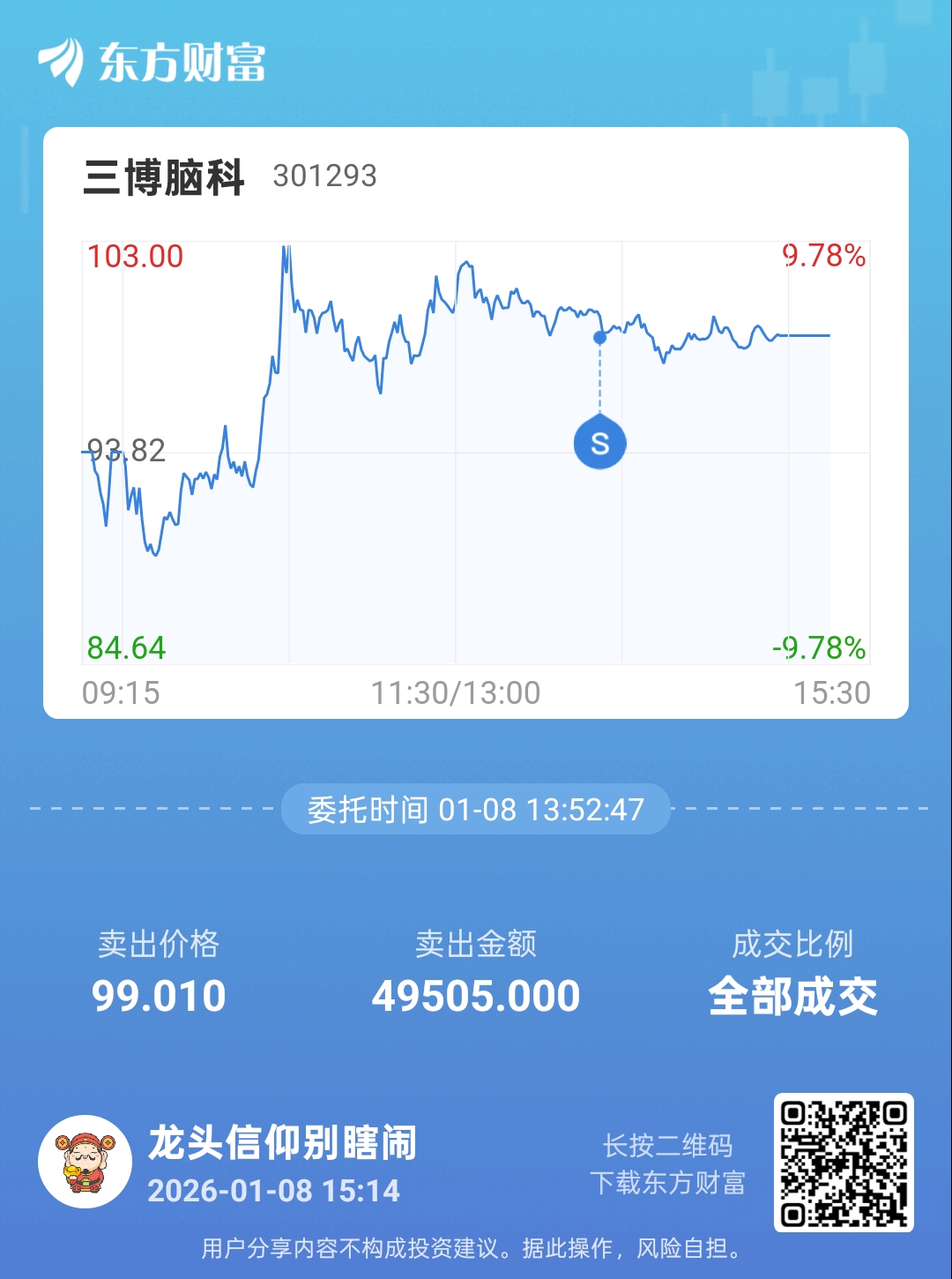 $三博脑科(SZ301293)$ 兄弟萌发财,我开始看空等回调。